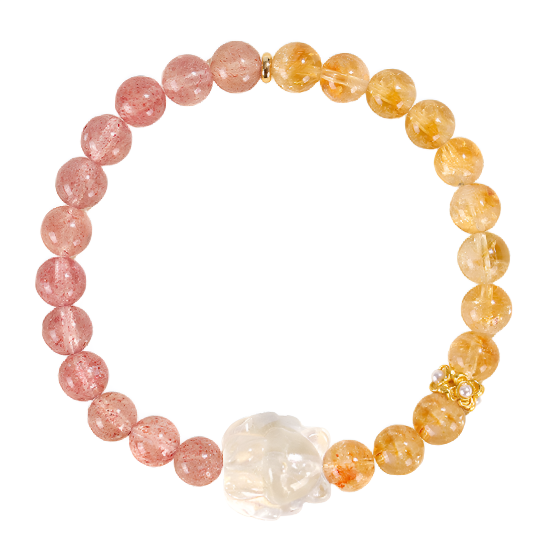 [Love Lucky]Strawberry Quartz Yellow Tower Crystal Nine-Tailed Fox Bracelet