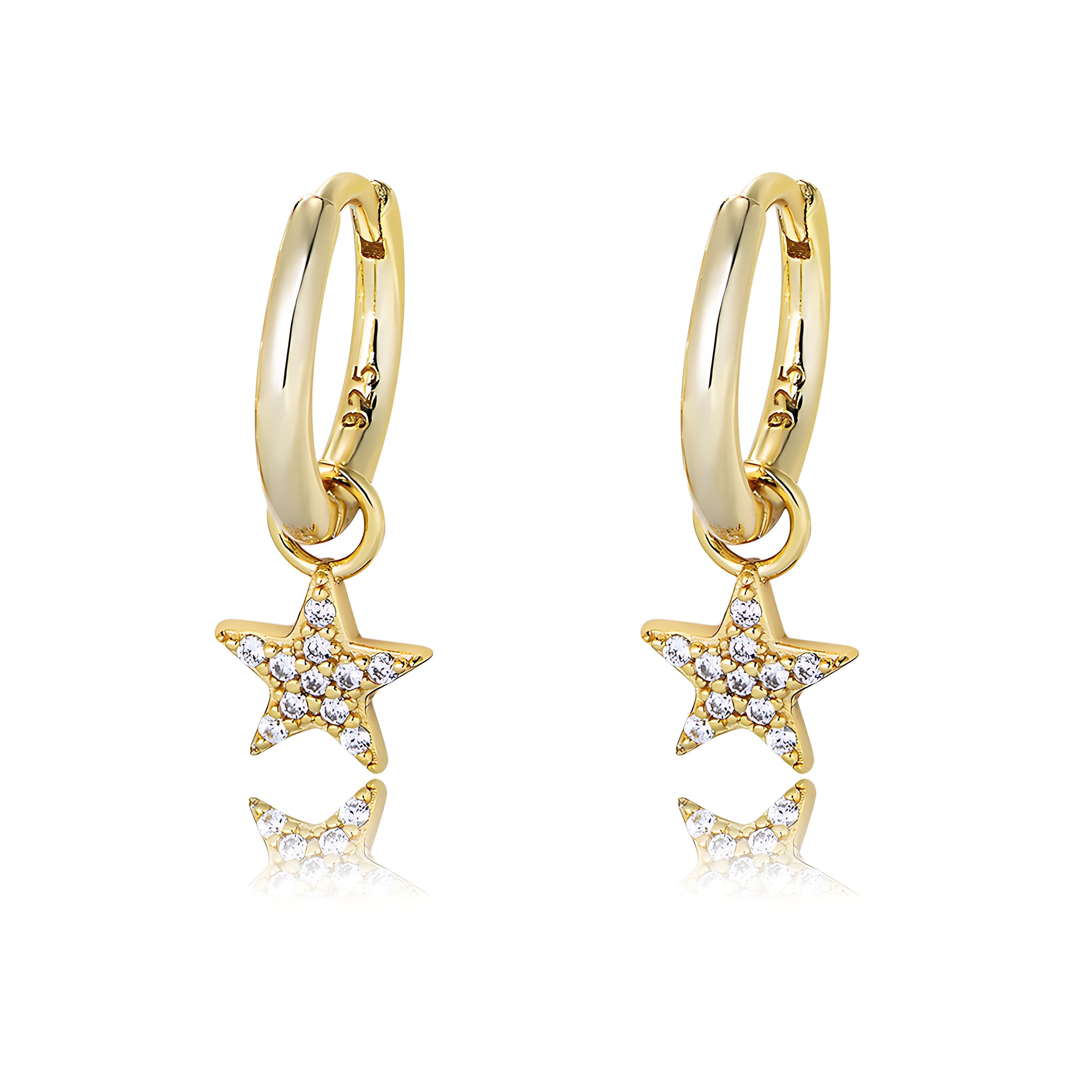 [Love Lucky]S925 silver colored zircon asymmetrical cross earrings
