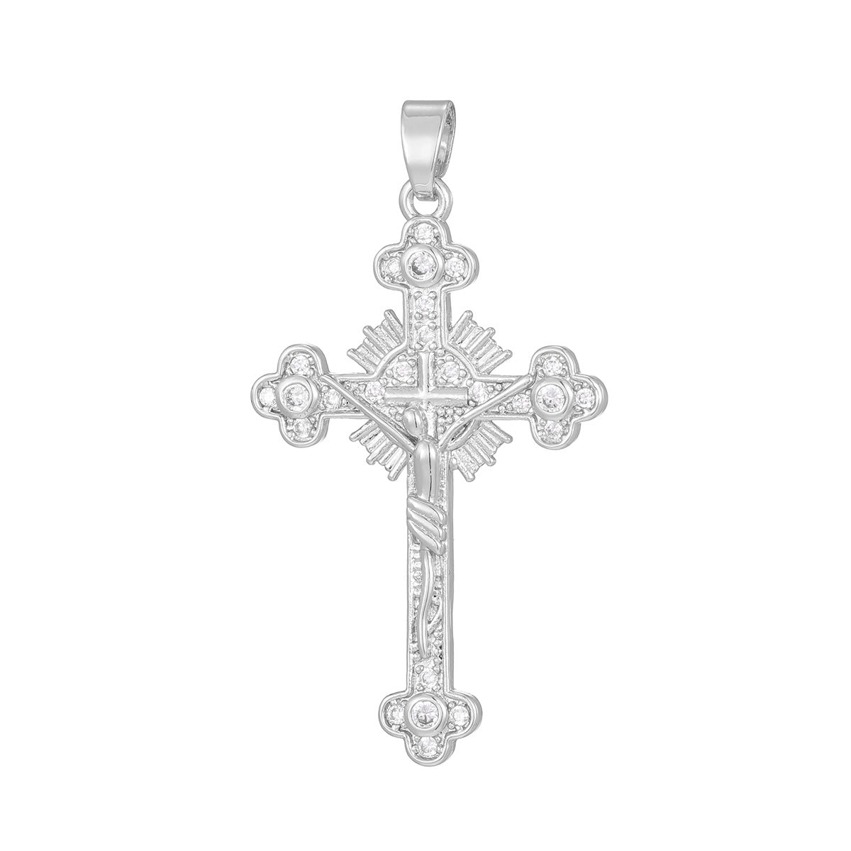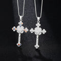 [Love Lucky]Full Diamond Colored Zircon Cross Pendant Necklace