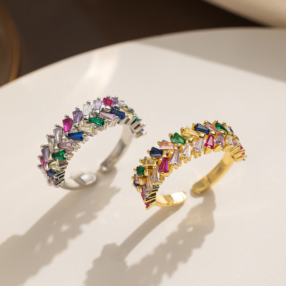 [Love Lucky]Double row colored zircon open adjustable ring