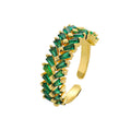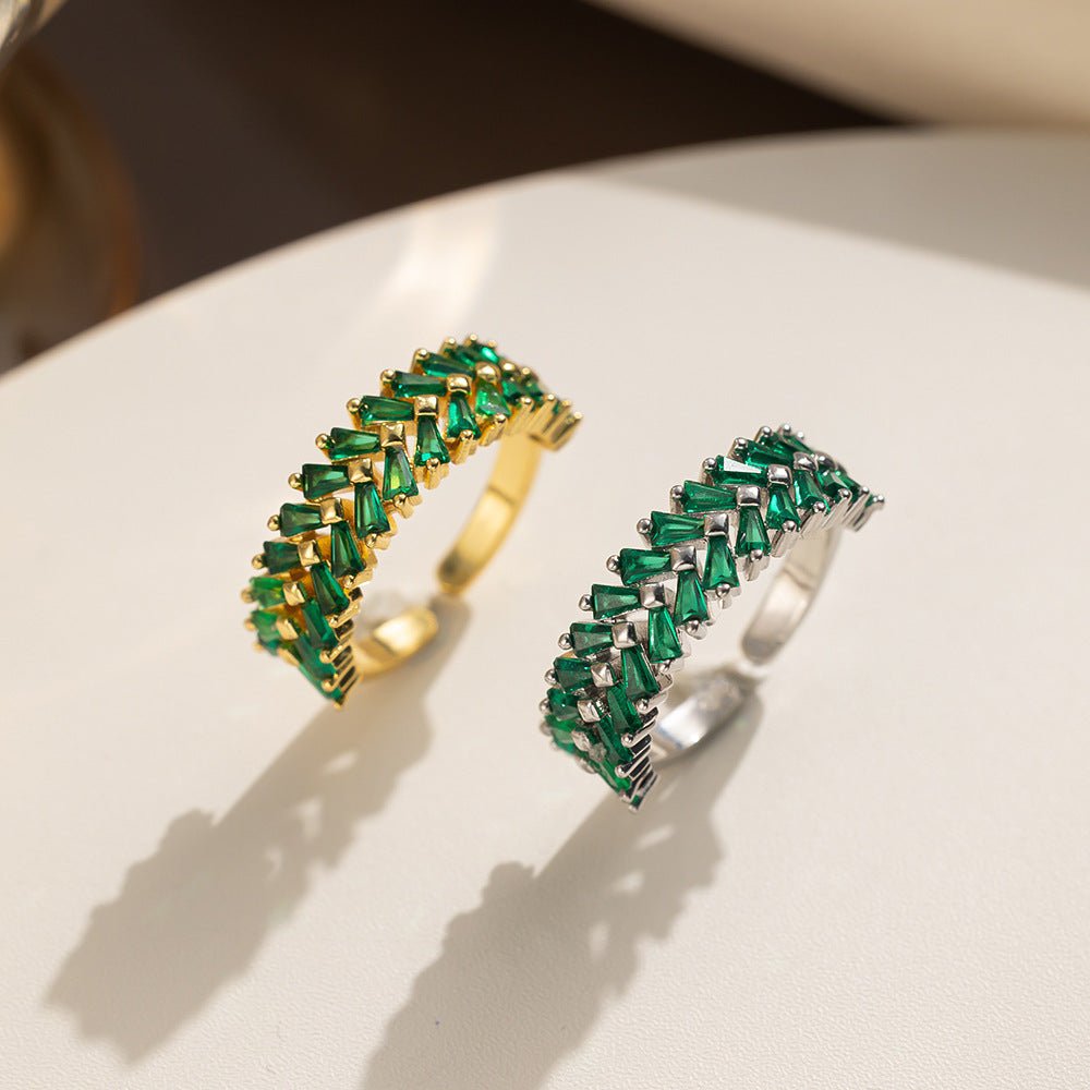 [Love Lucky]Double row green zircon open adjustable ring