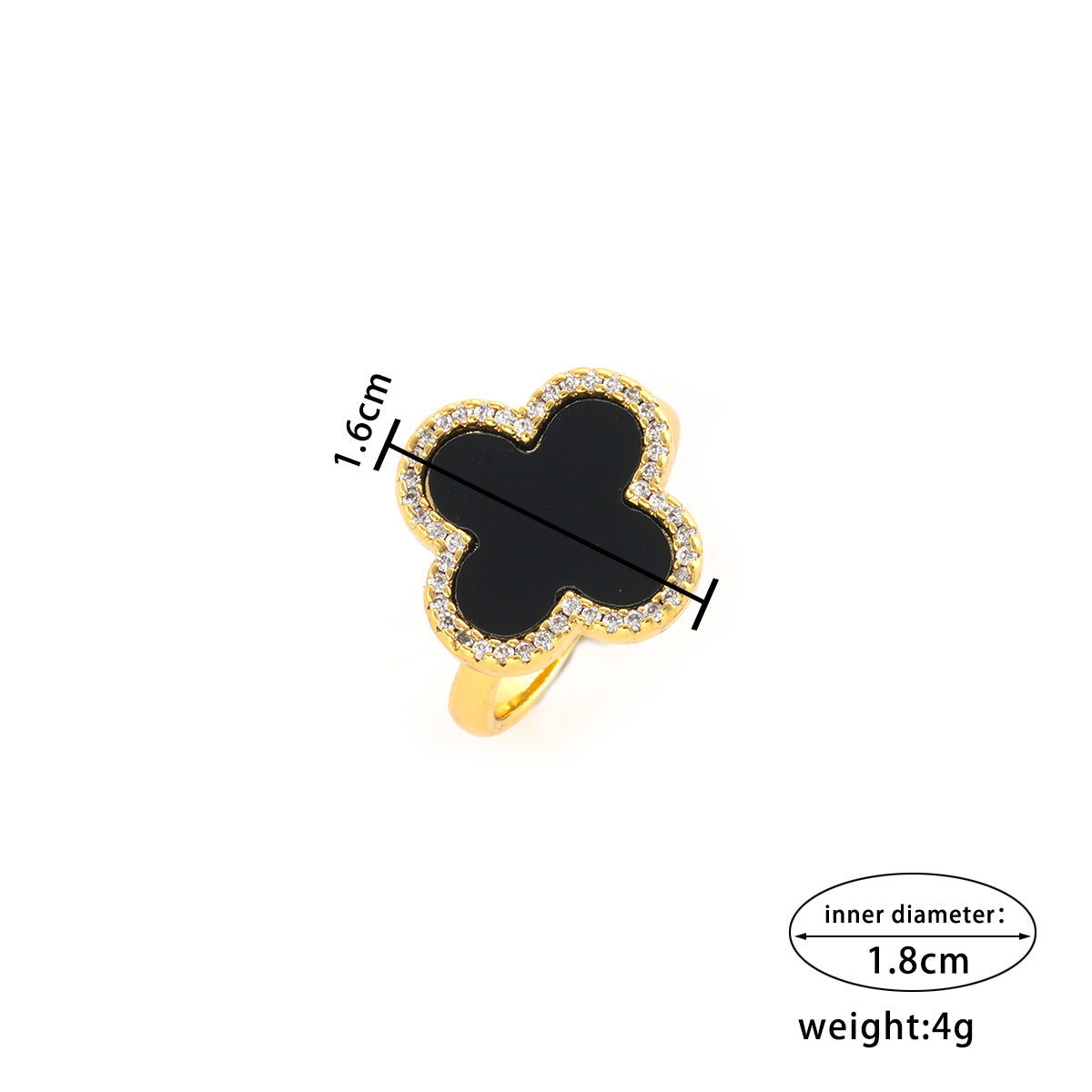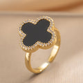 [Love Lucky]Four-leaf black and white shell plated 18k gold ring
