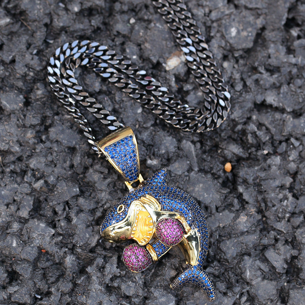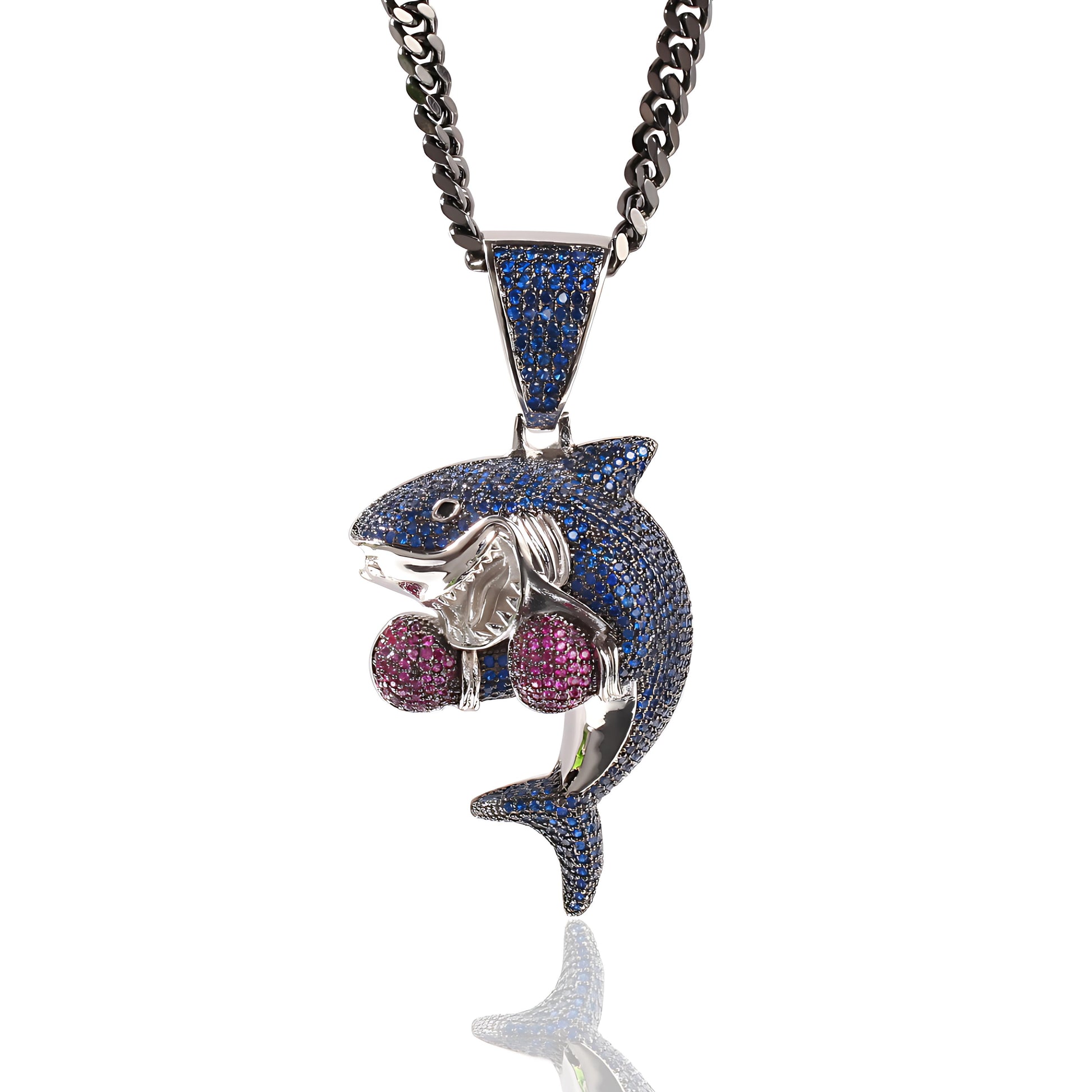 [Love Lucky]Boxing Shark Zircon Pendant Necklace