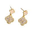 [Love Lucky]Four-leaf clover with diamonds Fritillary stud earrings