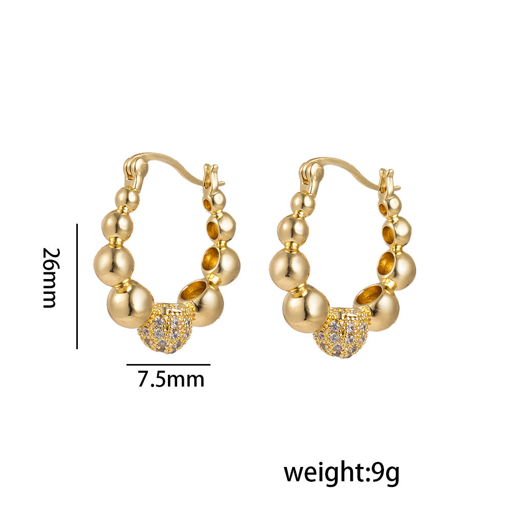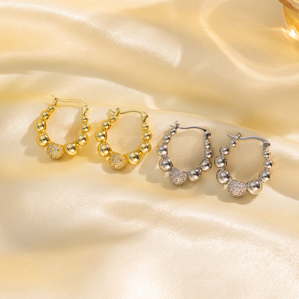 [Love Lucky]Light luxury round bead diamond earrings