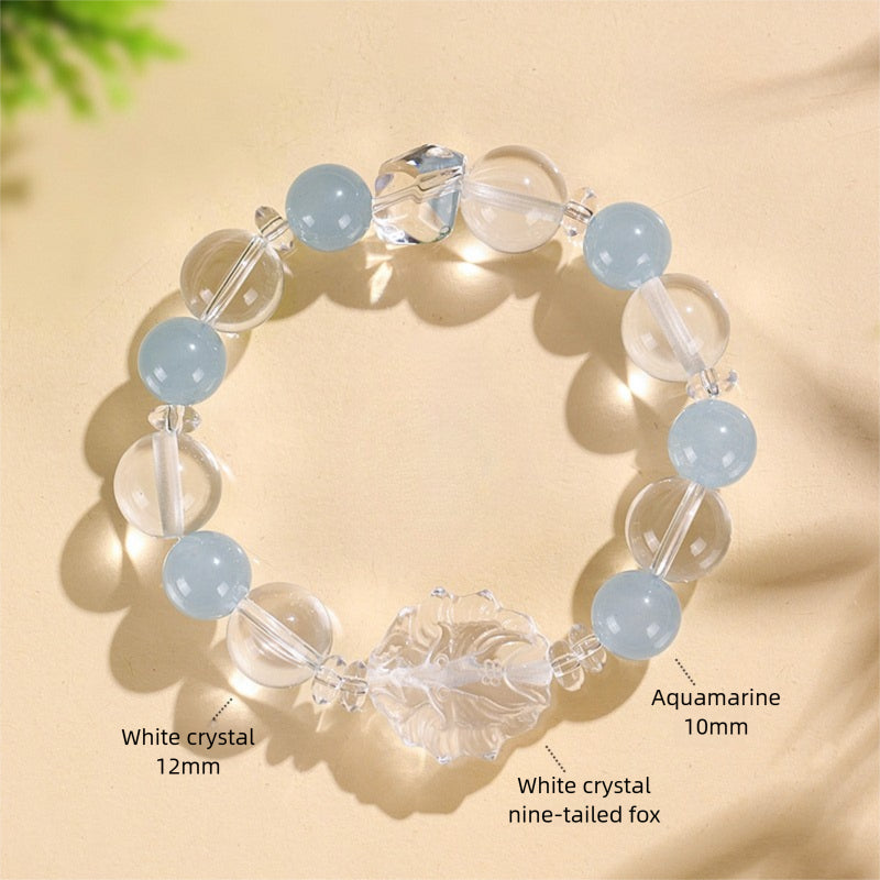 [Love Lucky]Aquamarine and White Crystal Nine-Tailed Fox Bracelet
