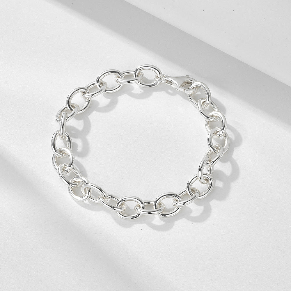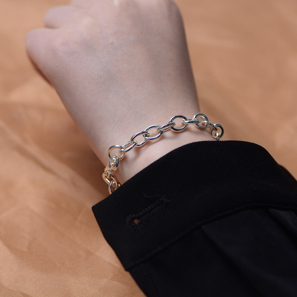 The rough silver chain is interlocked with each other, and the neat lock design is like condensing the street coolness on the wrist. ✨ No redundant decoration, relying on tough lines to support the aura, it is the "stack wear necessity" of fashion gurus
