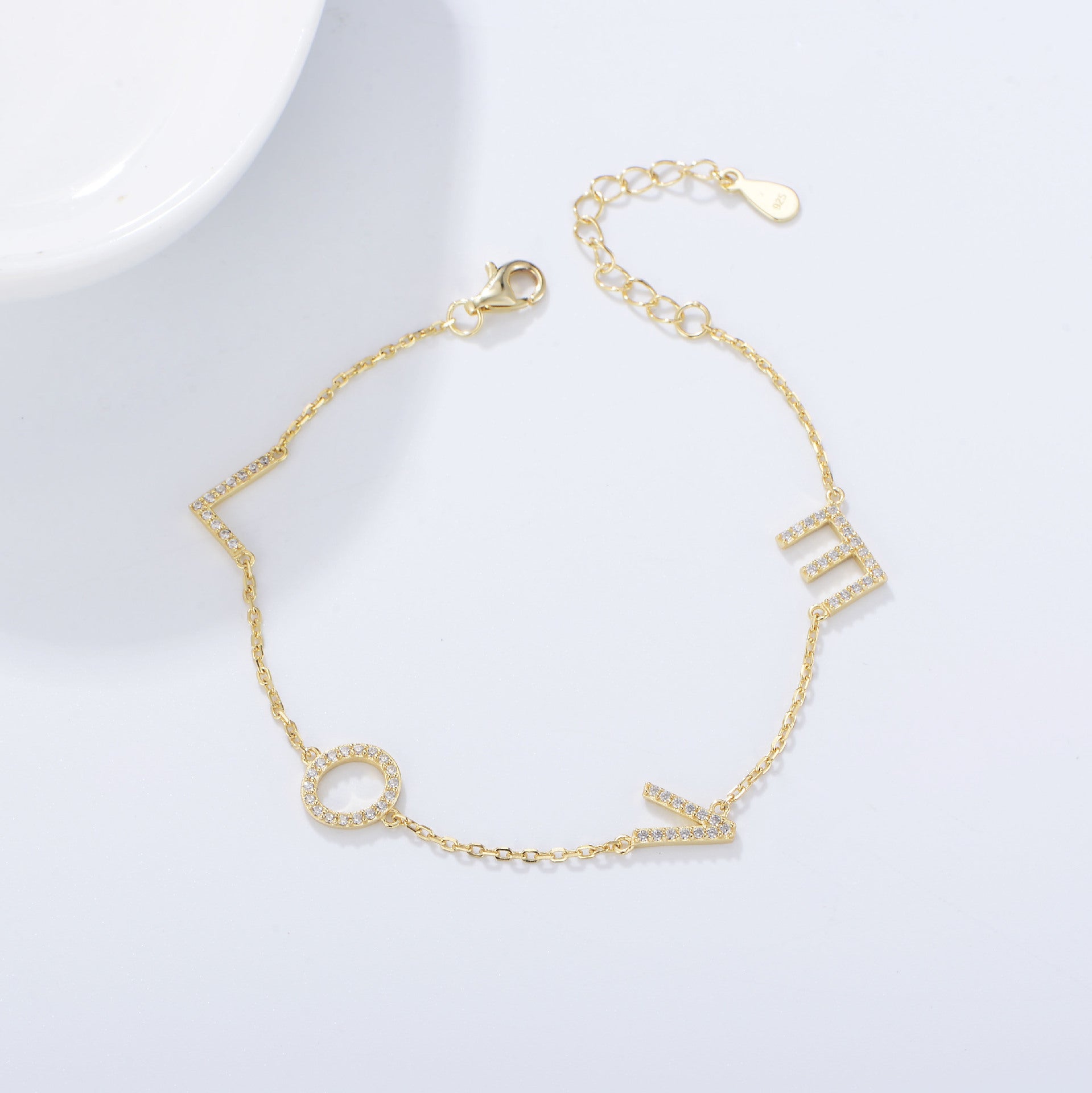 [Love Lucky]S925 silver LOVE English letter diamond sterling silver bracelet