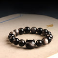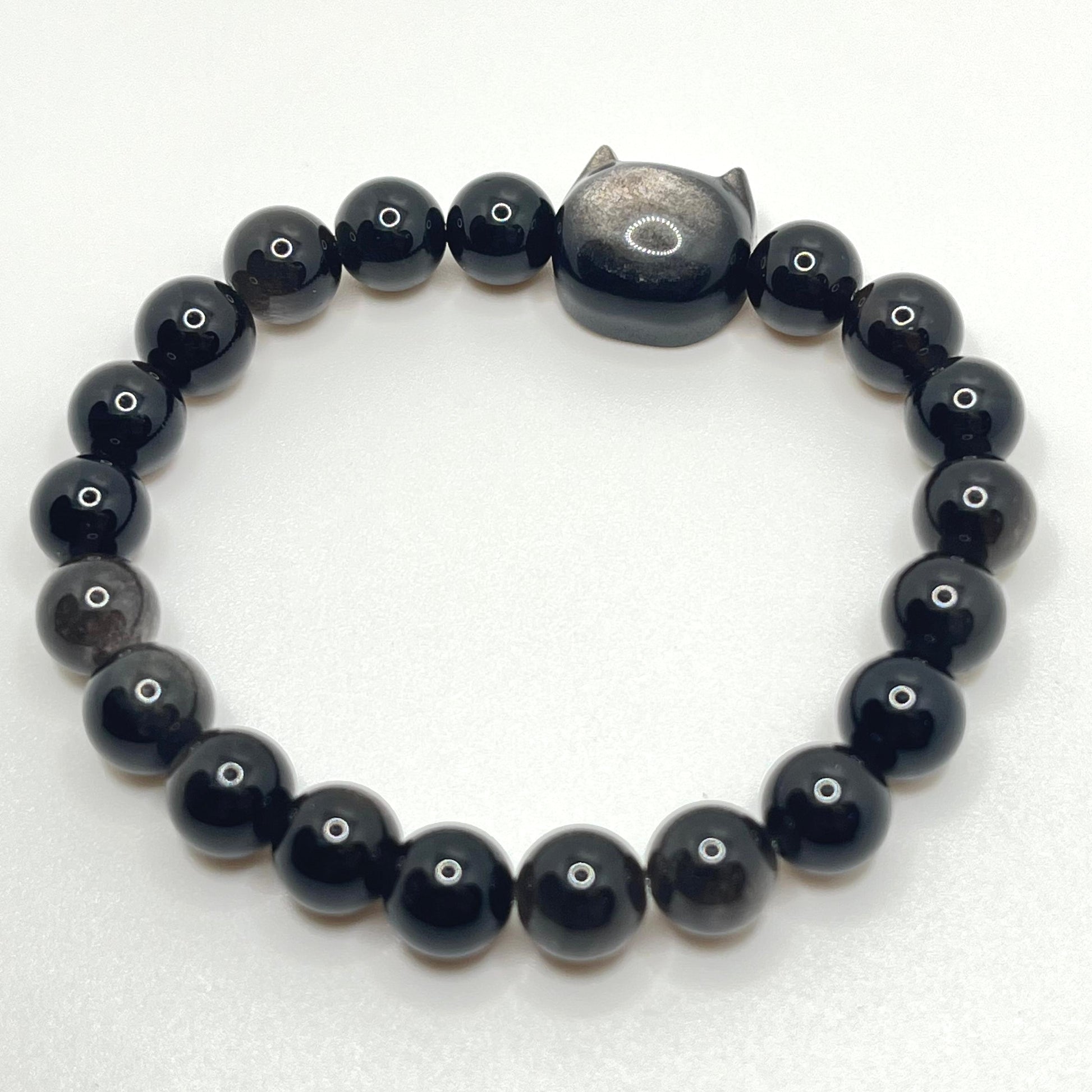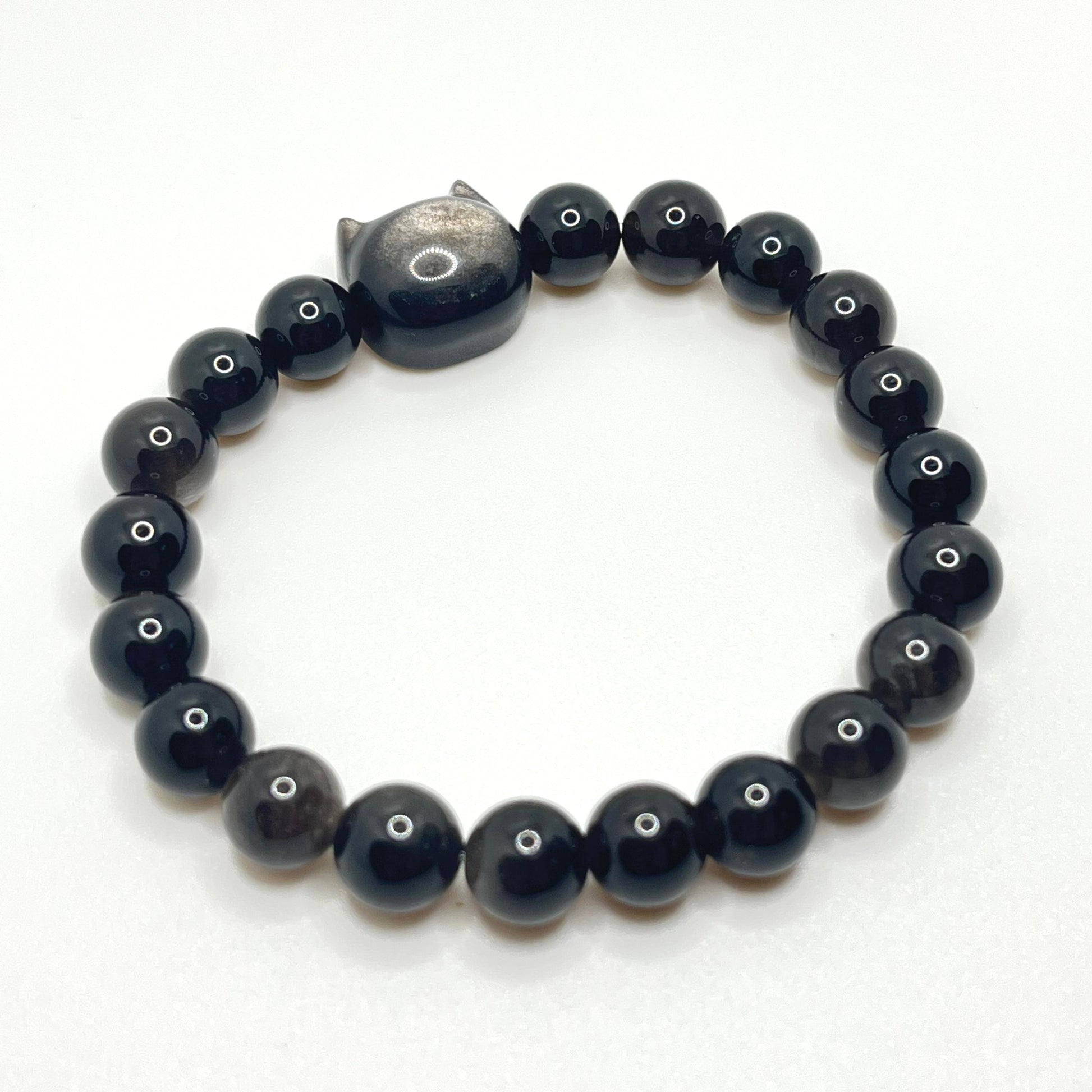 [Love Lucky]Silver Obsidian Cat Head Couple Bracelet