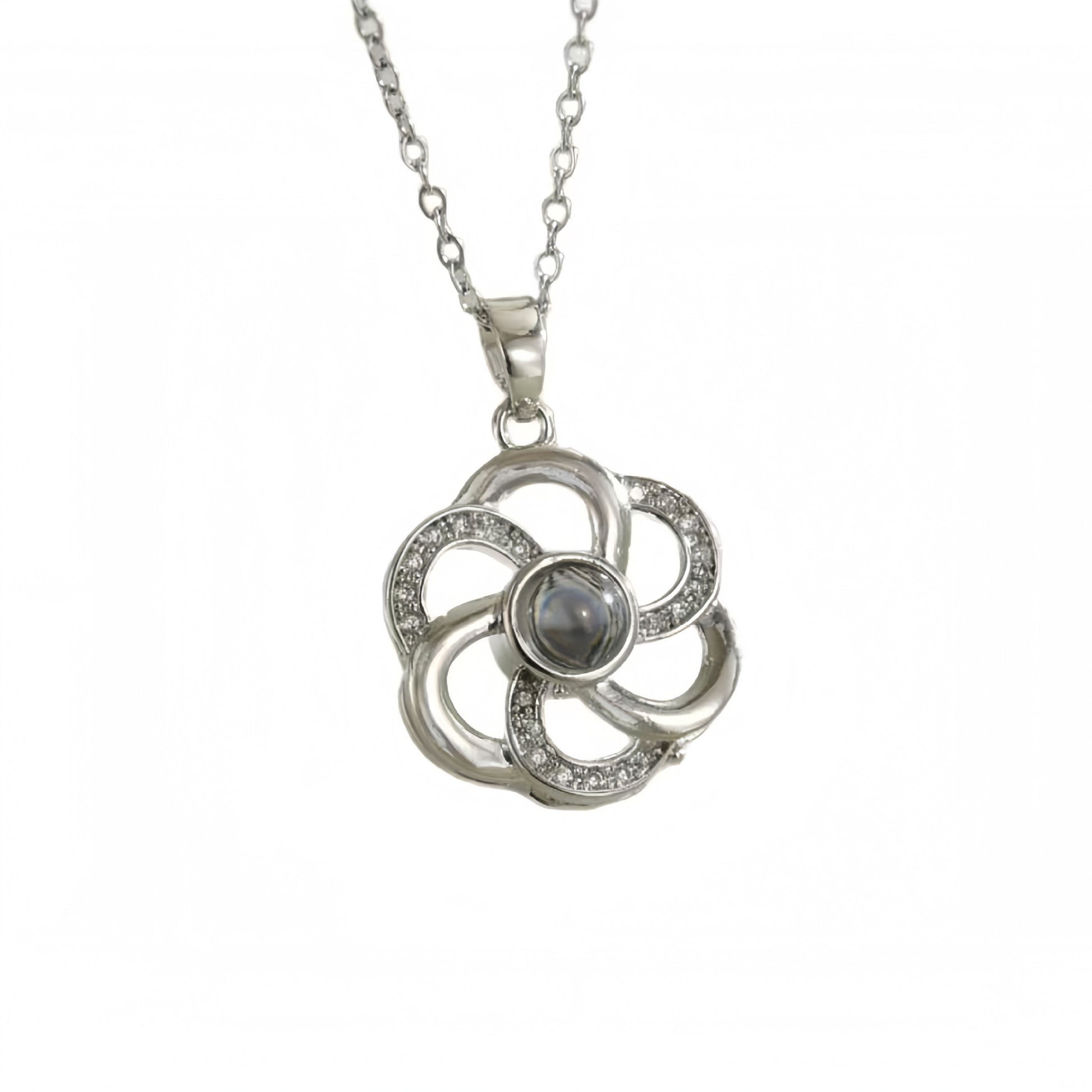 • Custom Flower Pendant – The pendant features a winding flower design with smooth, elegant lines, and is accented with tiny zircons around the edges, making the flower appear more vibrant under light and shadow.