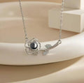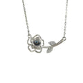 • Custom Rose Petal Pendant – The pendant features a simple, elegant silver line outlining the petal shape, with a round, lustrous gemstone nestled in the center, emitting a discreet yet captivating radiance.