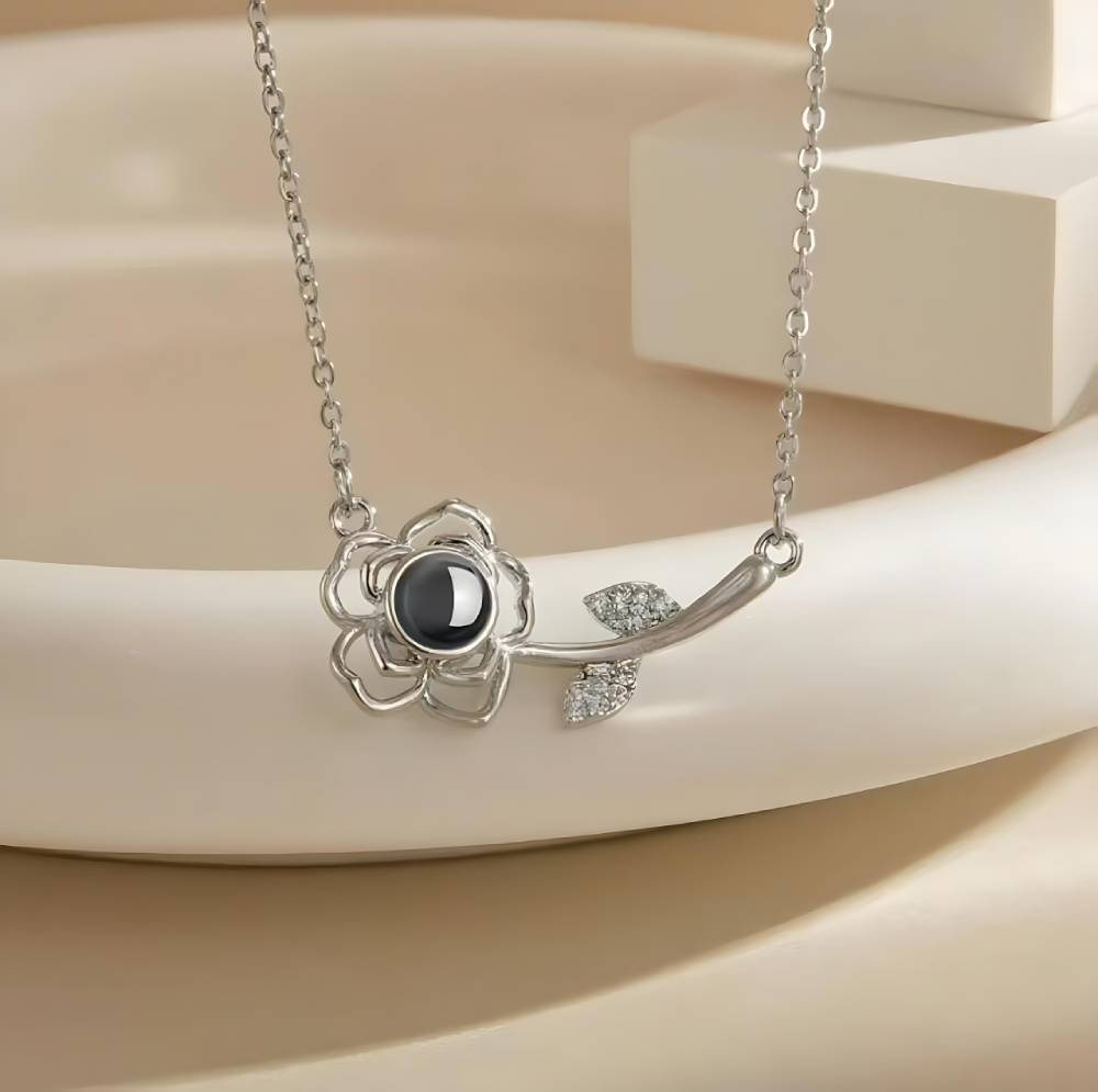 Personalized Rose Petal Photo Necklace
