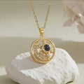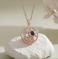 • Customizable Star and Moon Pendant – This necklace depicts a dreamy cosmic scene against a warm gold backdrop. The slender gold chain is as light as a star trail, while the pendant features a hollowed-out star and moon design. The crescent moon, set with sparkling diamonds, evokes the radiance of the Milky Way. Stars intertwine and intersect to create a rhythmic pattern, while a deep black gemstone, like the heart of the night sky, captures the mystery and brilliance of the stars and moon.