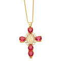 [Love Lucky]Red Zircon Madonna Cross Pendant Necklace