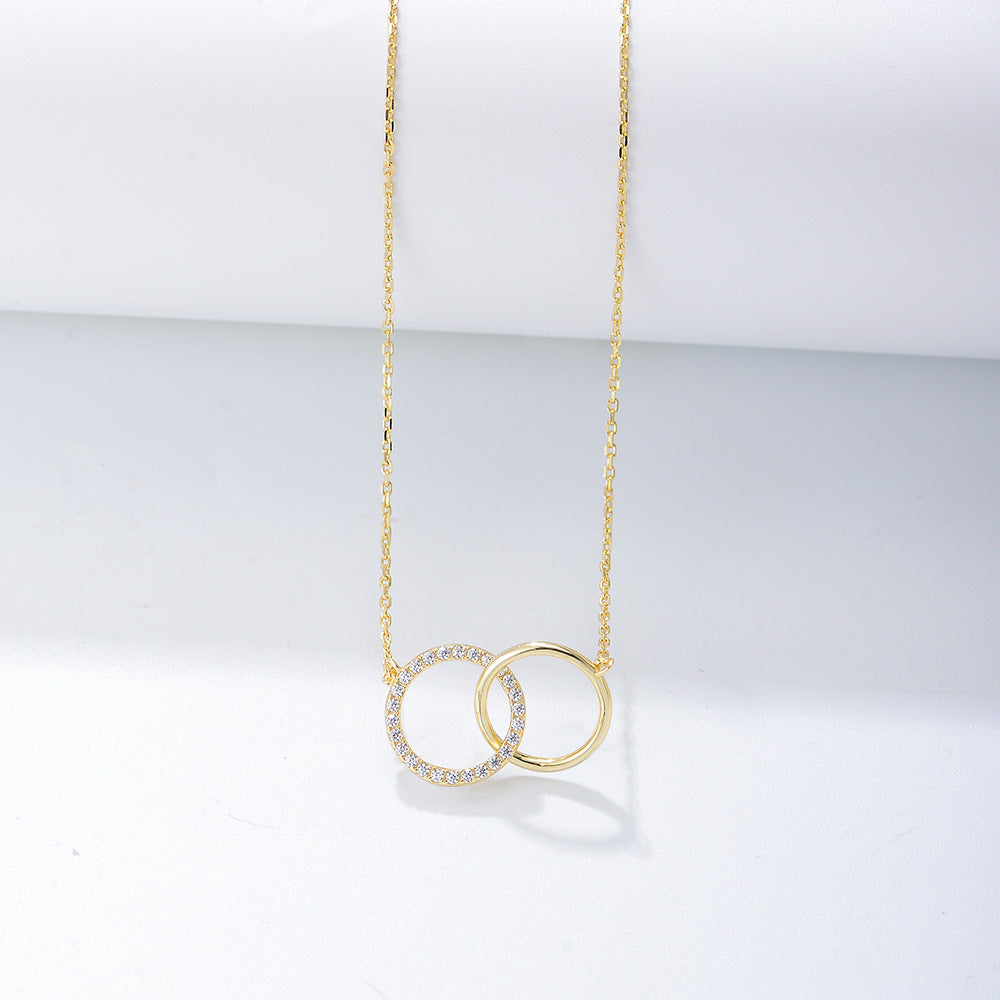 [Love Lucky]S925 Silver Diamond Double Circle Double Ring Necklace