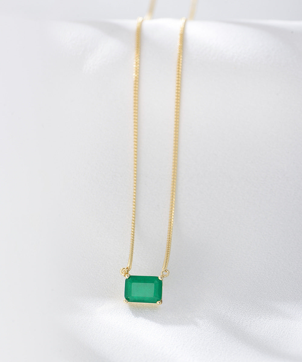 [Love Lucky]S925 Silver Square Emerald Necklace