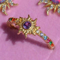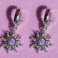 Crafted in shimmering gold tones, each piece features a luminous fire opal at the center, radiating with cosmic hues of pink, purple, and blue. Surrounded by sparkling sun-ray details, this set captures the essence of warmth, light, and timeless elegance.